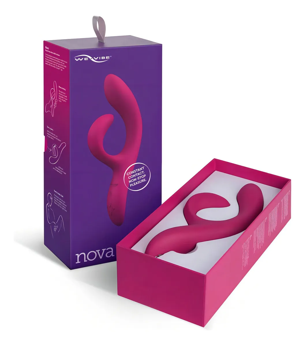 Soy el We-Vibe Nova 2, un vibrador doble que estimula clítoris y punto G simultáneamente. Mi diseño flexible se adapta a tu cuerpo para mantener siempre el contacto con el clítoris, incluso cuando te movés.